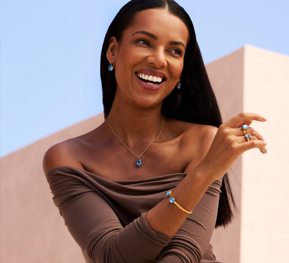 Named after the French word for light, the Lumière Collection celebrates vintage elegance with a bold, modern edge. Featuring square and rectangular-cut crystals in saturated hues, each piece captures the essence of timeless glamor. Think rich jewel tones, clean lines and luminous sparkle - designed for those who embrace sophistication with un apologetic confidence.