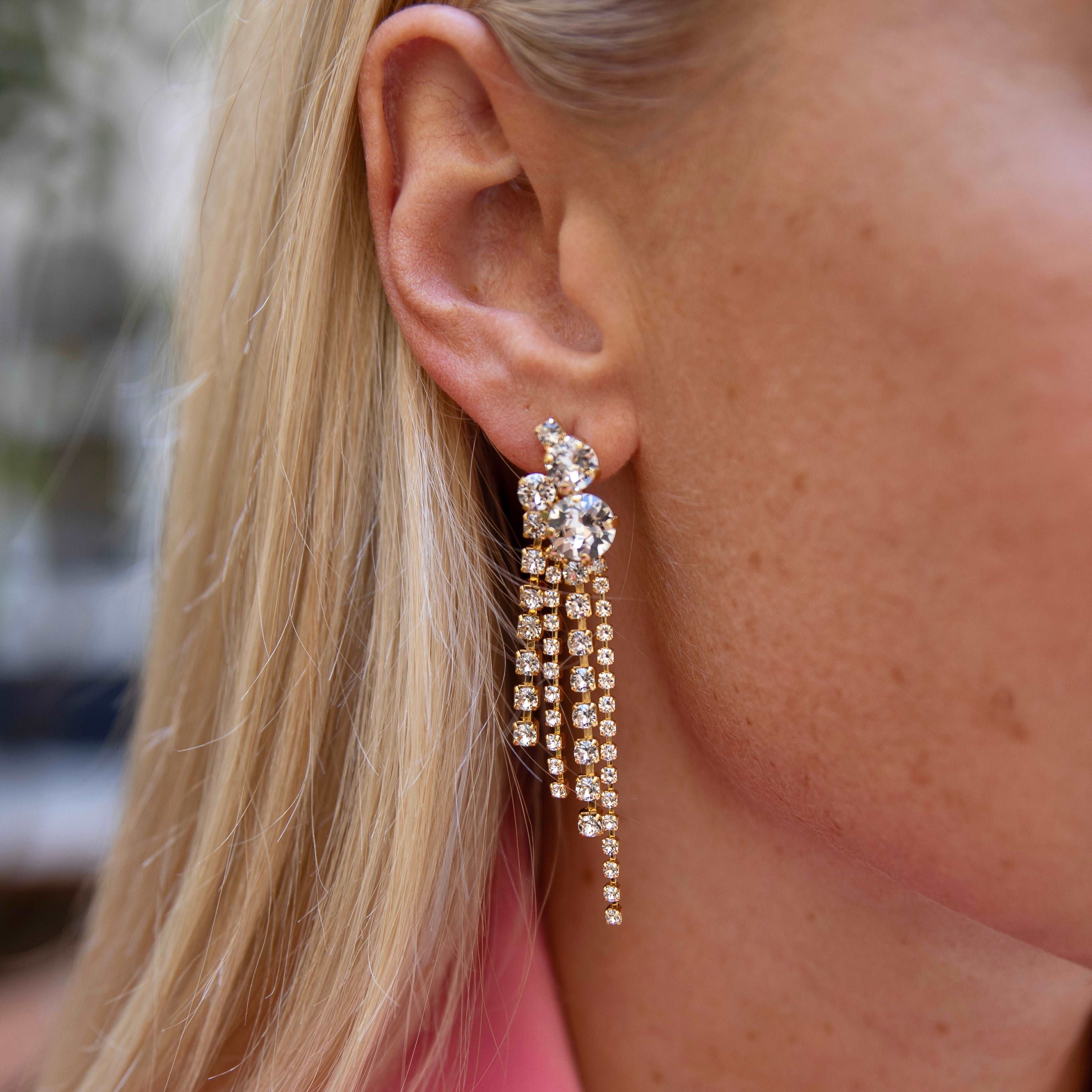 Trust us when we say that you need these glistening statement earrings in your accessory arsenal. Our Amy Earrings in Crystal feature a unique design with dazzling crystals made of the highest quality.