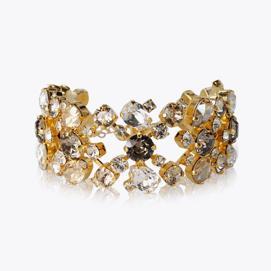 Make an elegant statement with our lovely Aurelia Bracelet. Bejeweled with crystals made of the highest quality, this dazzling jewelry creation will guarantee a flood of compliments. Style the Aurelia Bracelet with your little black dress, or why not your favorite cashmere sweater for a more casual look?