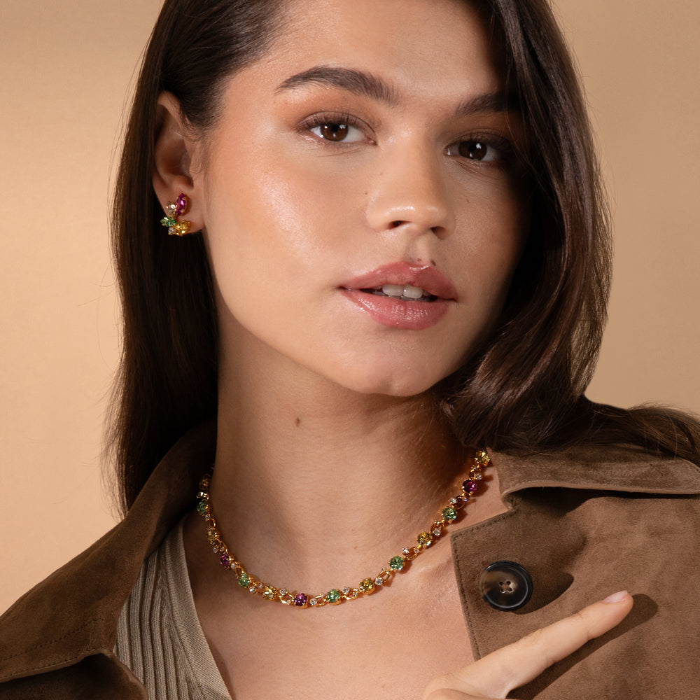 Small but bold, the Clare Earrings bring serious sparkle with their rich autumn-toned stones. Perfect for elevating your everyday look or adding a pop of color to a dressed-up moment. These are your instant mood-lifters, no matter the outfit.