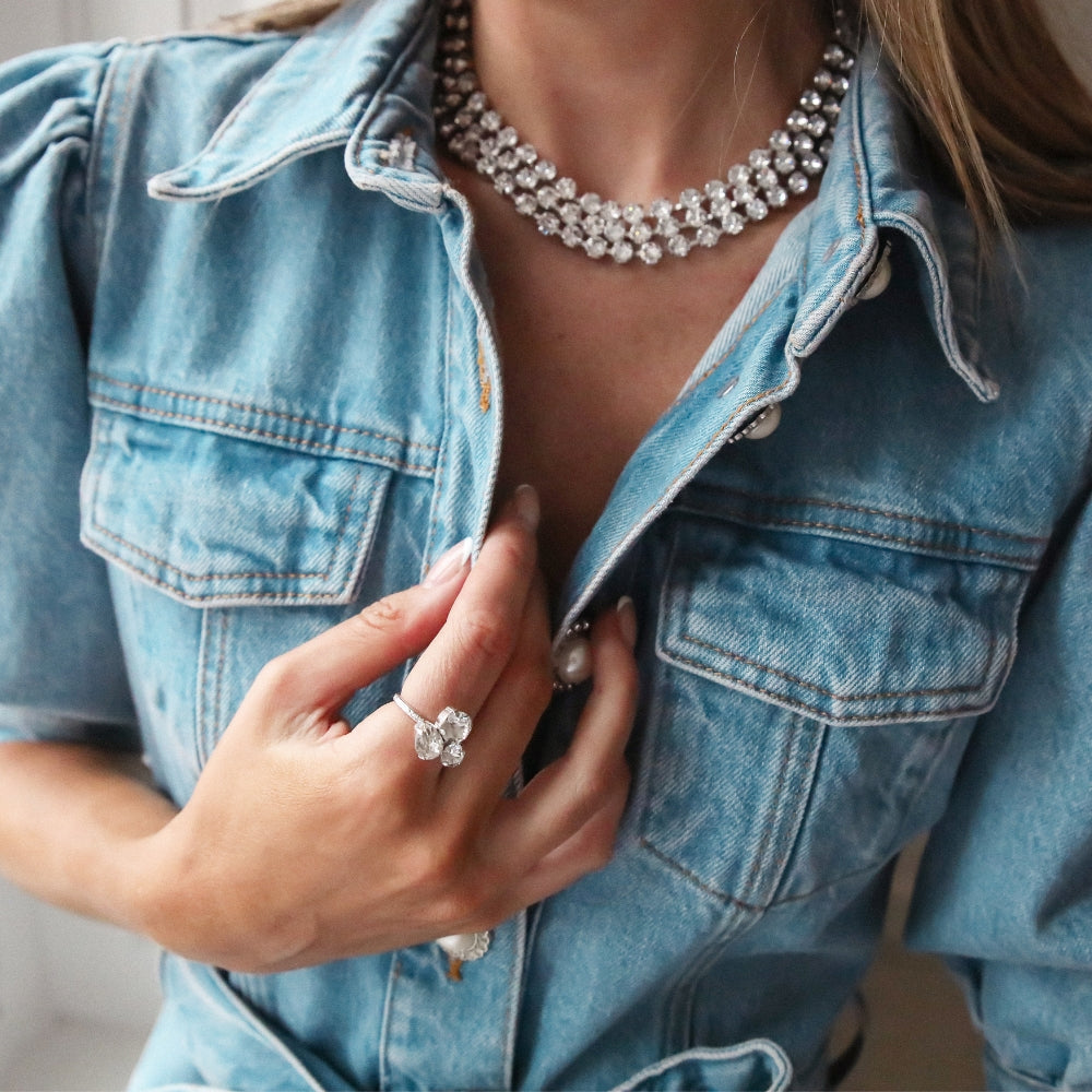 The dazzling Colette Ring is doubtlessly a must-have in your ring collection. The design features a beautiful combination of three different crystals with unique shapes. The Colette Ring is available in both Crystal and Coral Combo.