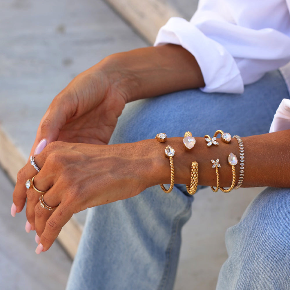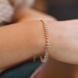 This piece of jewelry is definitely something extra. Create an elegant look with our sparkling Navette Bracelet that will add the perfect amount of glam to your outfit. Perfect to combine with our Crystal Navette Necklace.