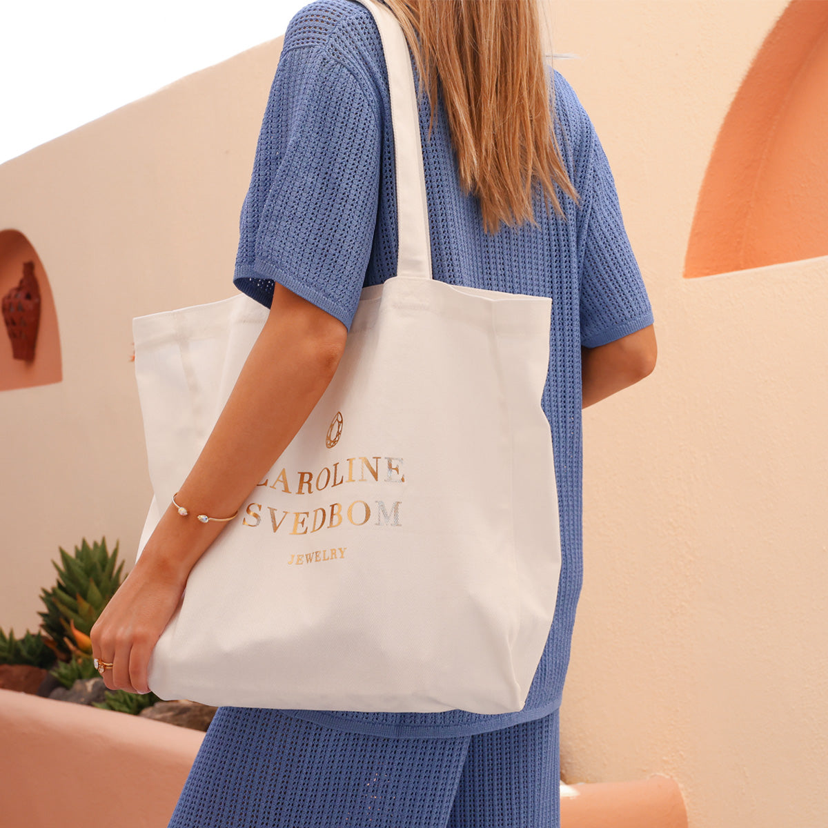 Meet the Caroline Tote Bag - your new go-to, wherever you're headed. Crafted from durable cotton and stamped with our signature logo, this tote is as stylish as it is functional. Whether you're beach-bound, gym-ready or running everyday errands, Caroline Tote Bag got you covered. Lightweight, spacious and effortlessly cool - it's the bag you'll reach for again and again.