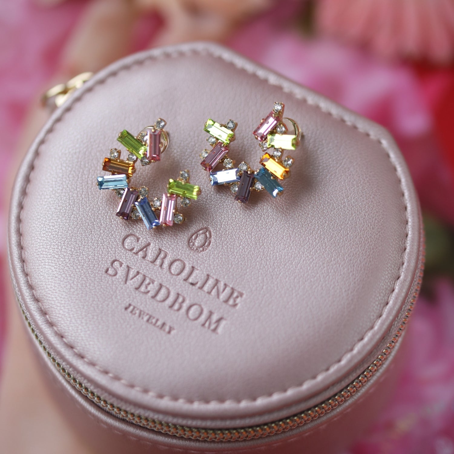 Perhaps this season's coolest earrings? Our fashionable Gina Earrings! The design features Baguette Crystals in different colours made of the highest quality. Hurry up and lay your hands on these beauties.