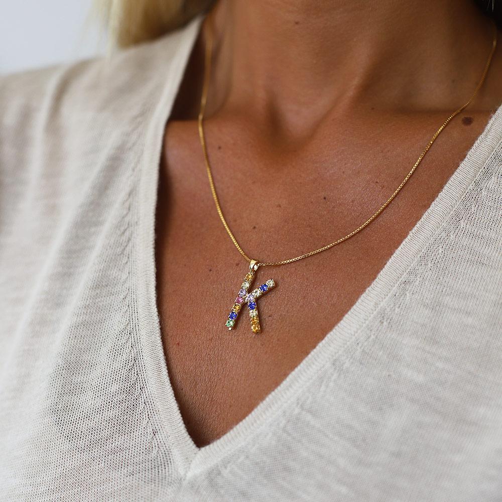 Letter Necklace K / Rainbow Combo