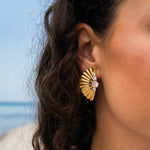 A statement of modern elegance, the Lucinda Earrings feature a sculptural pleated design that reflects light beautifully with every movement. Their sophisticated shape adds a touch of artistry, making them the perfect choice for both casual and formal occasions.