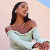 The Lumi Pearl Earrings are designed to make a statement. Their softly sculpted shapes meet glistening crystal and pearl details, creating a pair that feels both bold and glamorous. Whether worn with a simple everyday look or styled for an evening occasion, they add a touch of elegance with a modern edge. These earrings are the kind of piece you reach for again and again.