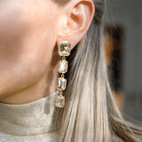 All jewelry is made of brass with 18-karat gold or rhodium plating and selectively chosen high-quality crystals. All jewelry complies with EU standards as nickel-safe/nickel-approved, meaning that the nickel content released is below the allowable threshold (0.05%). Nearly all metals contain some trace amounts of nickel, even if in extremely small quantities. The earring posts we use are made of 925 silver. All materials used in manufacturing are consistently tested for the highest quality.