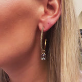 All jewelry is made of brass with 18-karat gold or rhodium plating and selectively chosen high-quality crystals. All jewelry complies with EU standards as nickel-safe/nickel-approved, meaning that the nickel content released is below the allowable threshold (0.05%). Nearly all metals contain some trace amounts of nickel, even if in extremely small quantities. The earring posts we use are made of 925 silver. All materials used in manufacturing are consistently tested for the highest quality.
