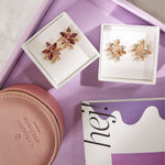 All jewelry is made of brass with 18-karat gold or rhodium plating and selectively chosen high-quality crystals. All jewelry complies with EU standards as nickel-safe/nickel-approved, meaning that the nickel content released is below the allowable threshold (0.05%). Nearly all metals contain some trace amounts of nickel, even if in extremely small quantities. The earring posts we use are made of 925 silver. All materials used in manufacturing are consistently tested for the highest quality.