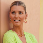 A smaller version of our popular ""Delia Earrings""- now available in Tropicana Combo! This design is feminine and is a beautiful complement for the everyday look as well as for the party dress. The drop shaped earrings with round sparkling crystals in different shades gives every woman the everyday glam they need.