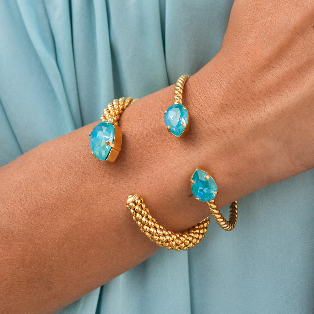 Our delicate Mini Drop Bracelet has two crystals made of the highest quality and a rope shaped adjustable bangle. This bracelet is a perfect detail for every occasion.