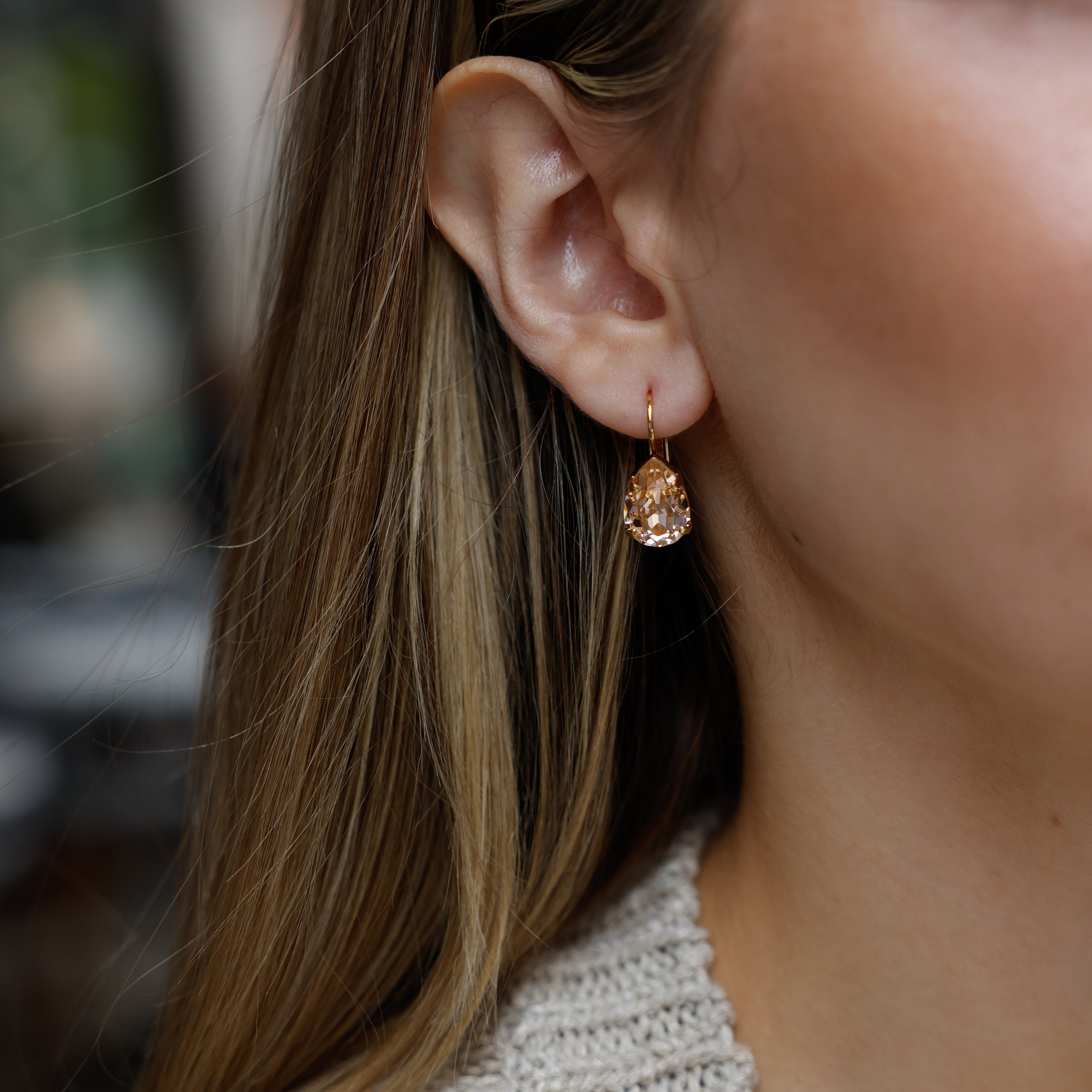 These delicate Mini Drop Clasp Earrings have our signature drop crystal and define feminine sophistication. Mini Drop Clasp Earrings are perfect as ”to go” accessories and everyone should own a pair in their jewelry wardrobe.