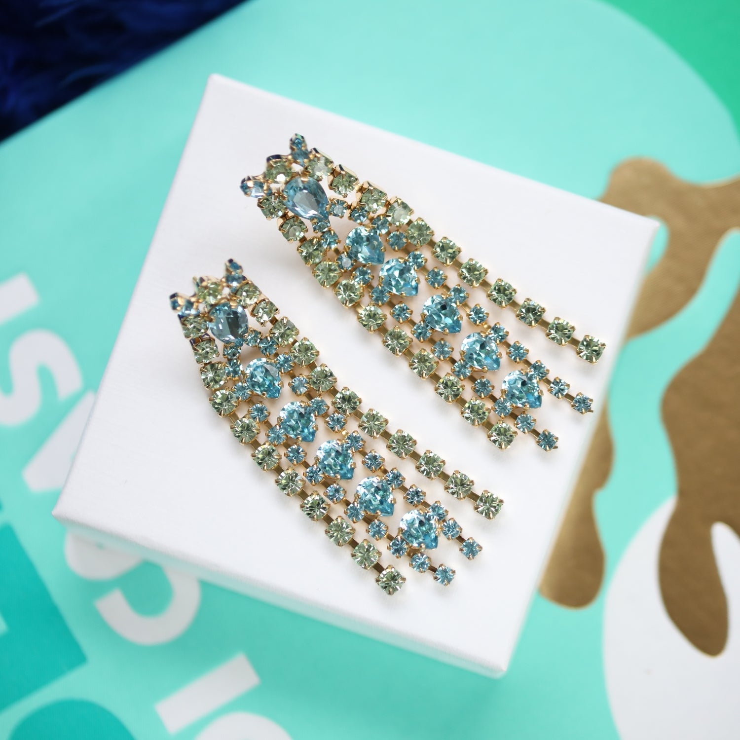 A smaller version of our best selling Penelope Earrings. These eye-catching statement earrings are going to turn some heads. Bejeweled with crystals made of the highest quality, there is no doubt you will feel like the light of the party wearing these.