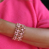 Make a bold and confident statement with our freshly launched Multi Cuff Bracelet. This bracelet is a true masterpiece that effortlessly transforms any look into a captivating work of art. Adorned with a mesmerizing array of dazzling crystals, our Multi Cuff Bracelet is the ultimate statement piece that commands attention and admiration.