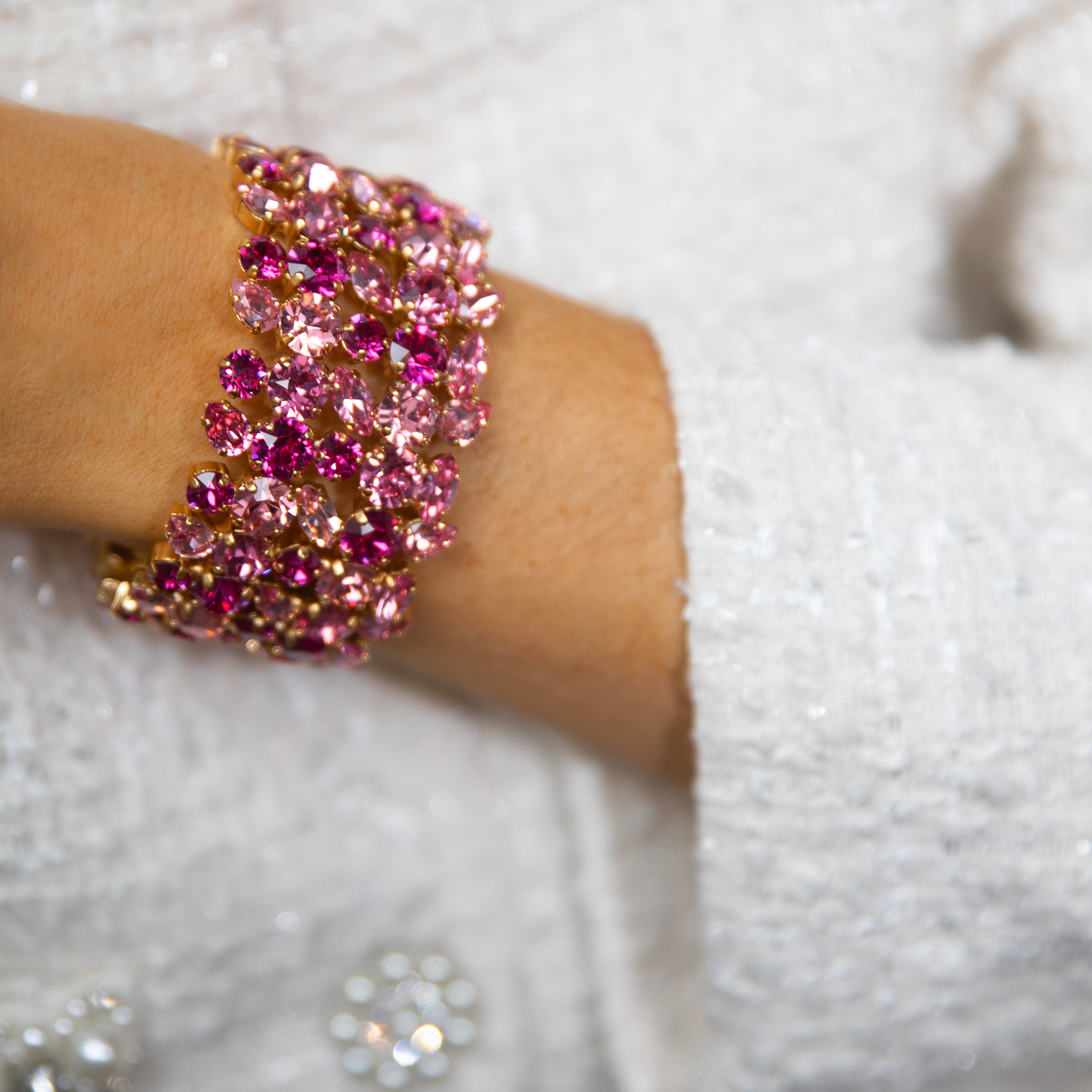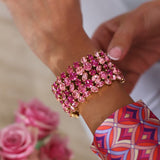 Introducing our most exclusive bracelet ever launched, the Multi Cuff in Fuchsia Combo is a glistening manifestation of sheer elegance and enchantment! Radiating a captivating sparkle and dreamy allure, this bracelet stands as the pinnacle of glamour, perfectly designed to complement the grace and charm of our Grace Earrings. Adorn your wrist with this glistening statement piece, crafted with unparalleled attention to detail and touch of artistry.