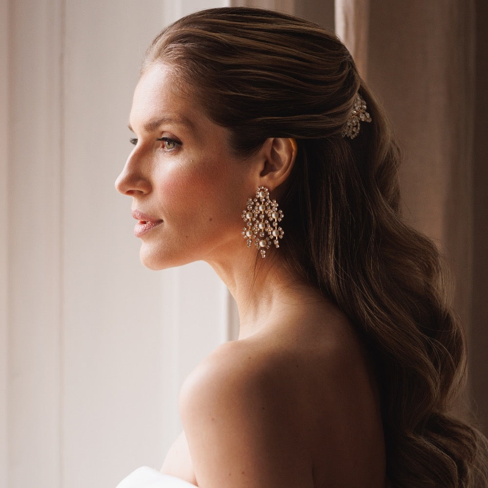 All jewelry is made of brass with 18-karat gold or rhodium plating and selectively chosen high-quality crystals. All jewelry complies with EU standards as nickel-safe/nickel-approved, meaning that the nickel content released is below the allowable threshold (0.05%). Nearly all metals contain some trace amounts of nickel, even if in extremely small quantities. The earring posts we use are made of 925 silver. All materials used in manufacturing are consistently tested for the highest quality.