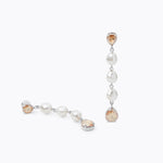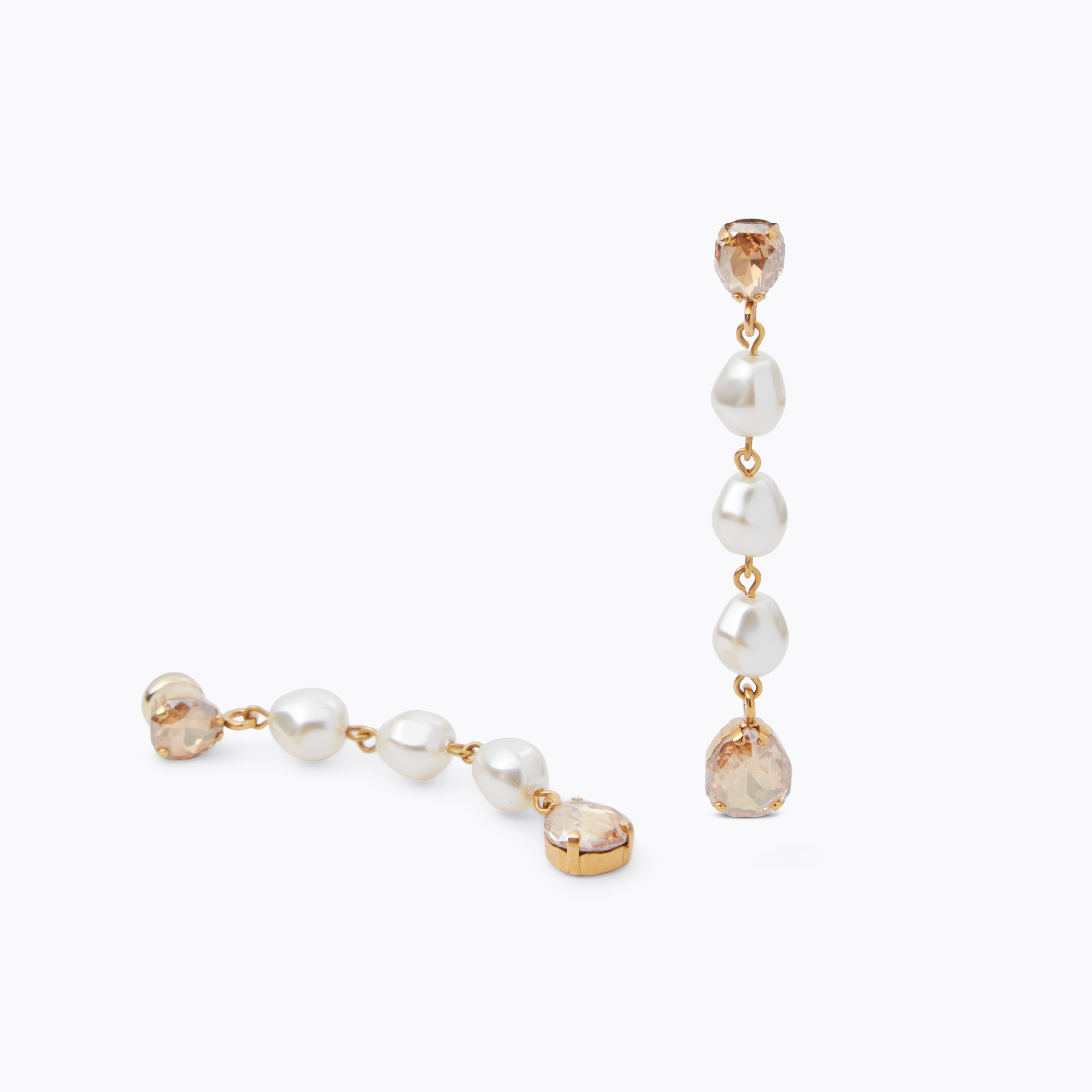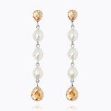 Introducing our sophisticated Paloma Earrings. These exquisite earrings feature delicate hanging pearls, each accented with a glistening crystal at the end. The combination of lustrous pearls and sparkling crystals creates an elegant look that is perfect for any occasion.