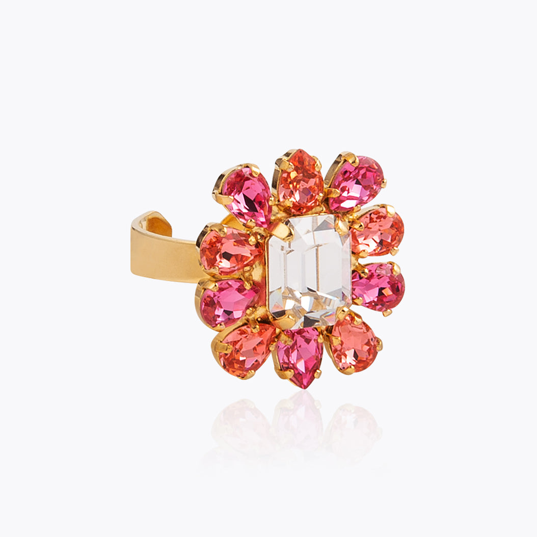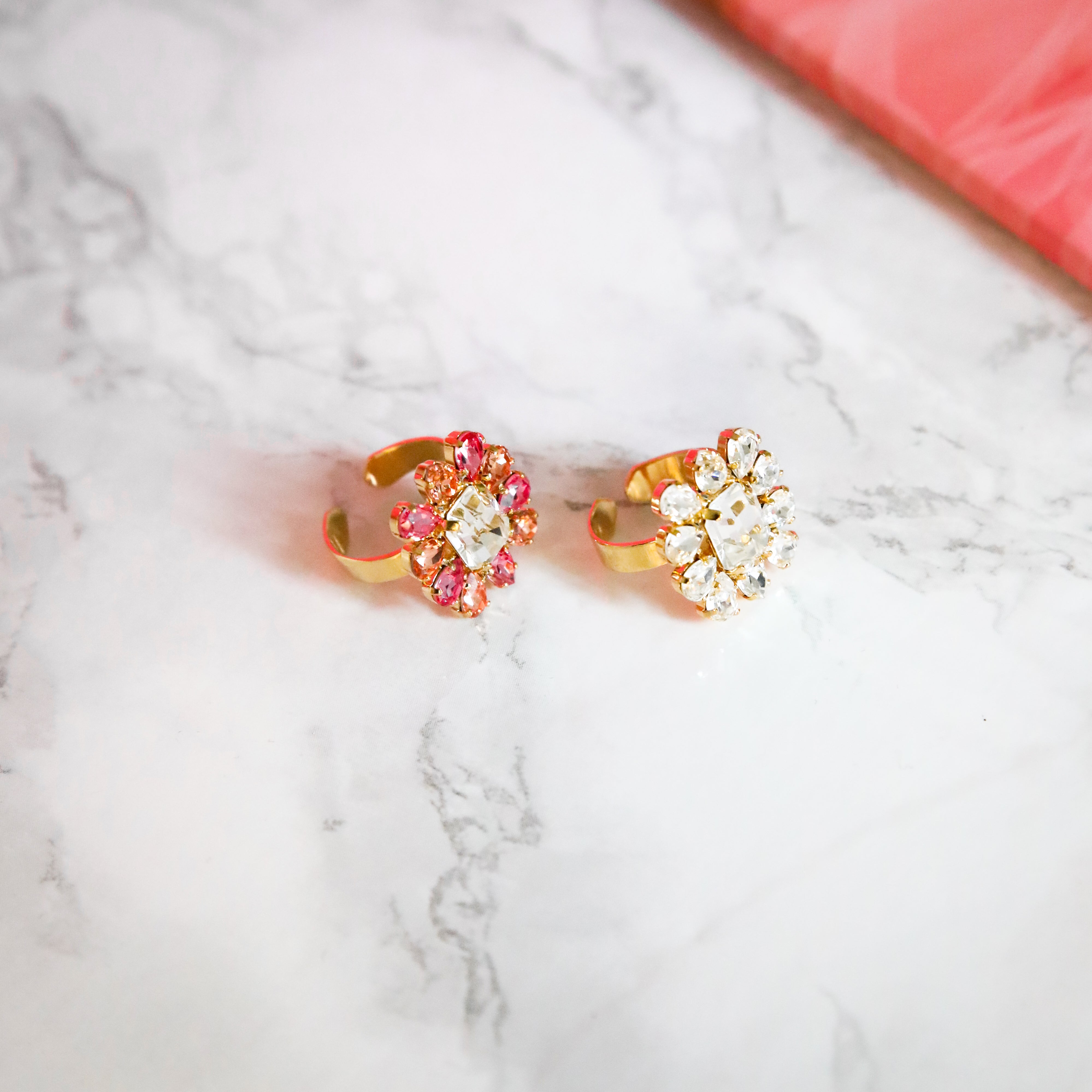 Discover our freshly launched Peony Collection and achieve some top-notch, fuss-free accessorizing! This magnificent ring features a flower-shaped design with high quality crystals. Match with Peony Earrings and Peony Necklace for a complete look. Available in both Crystal and Coral Combo.