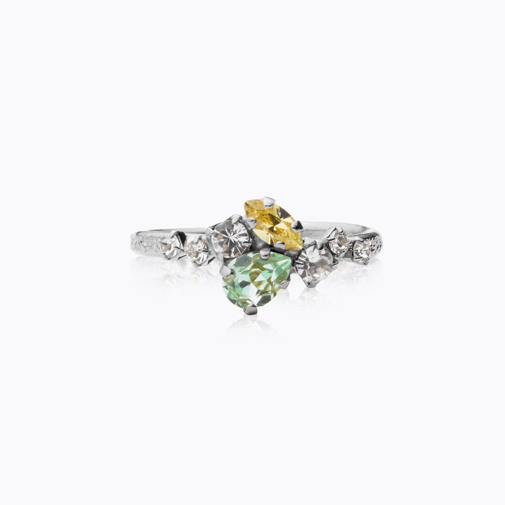The Sandra Ring combines elegance with a touch of playful sparkle. Its delicate design is carefully crafted to catch the light from every angle, adding a hint of sophistication and charm to any outfit. With its unique arrangement of crystals, the Sandra Ring makes a refined statement, whether you're dressing up for a special occasion or adding a little extra shine to your everyday look.
