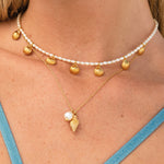 Inspired by sun-kissed shores, the Shell Pearl Choker combines natural beauty with a touch of luxury. Lustrous pearls and delicate shell charms capture the essence of the ocean. This piece is perfect for those who embrace effortless elegance with a bohemian spirit.