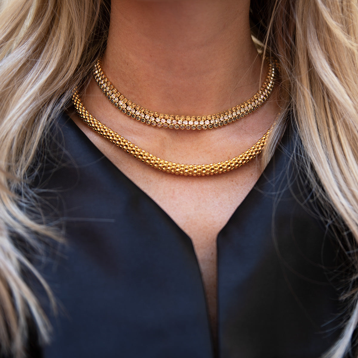 This is the perfect statement jewelry that you can wear just as it is or combine with your other favorites. This choker will add the perfect amount of sparkle to your outfit. Available in Golden Combo or Crystal.