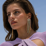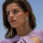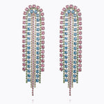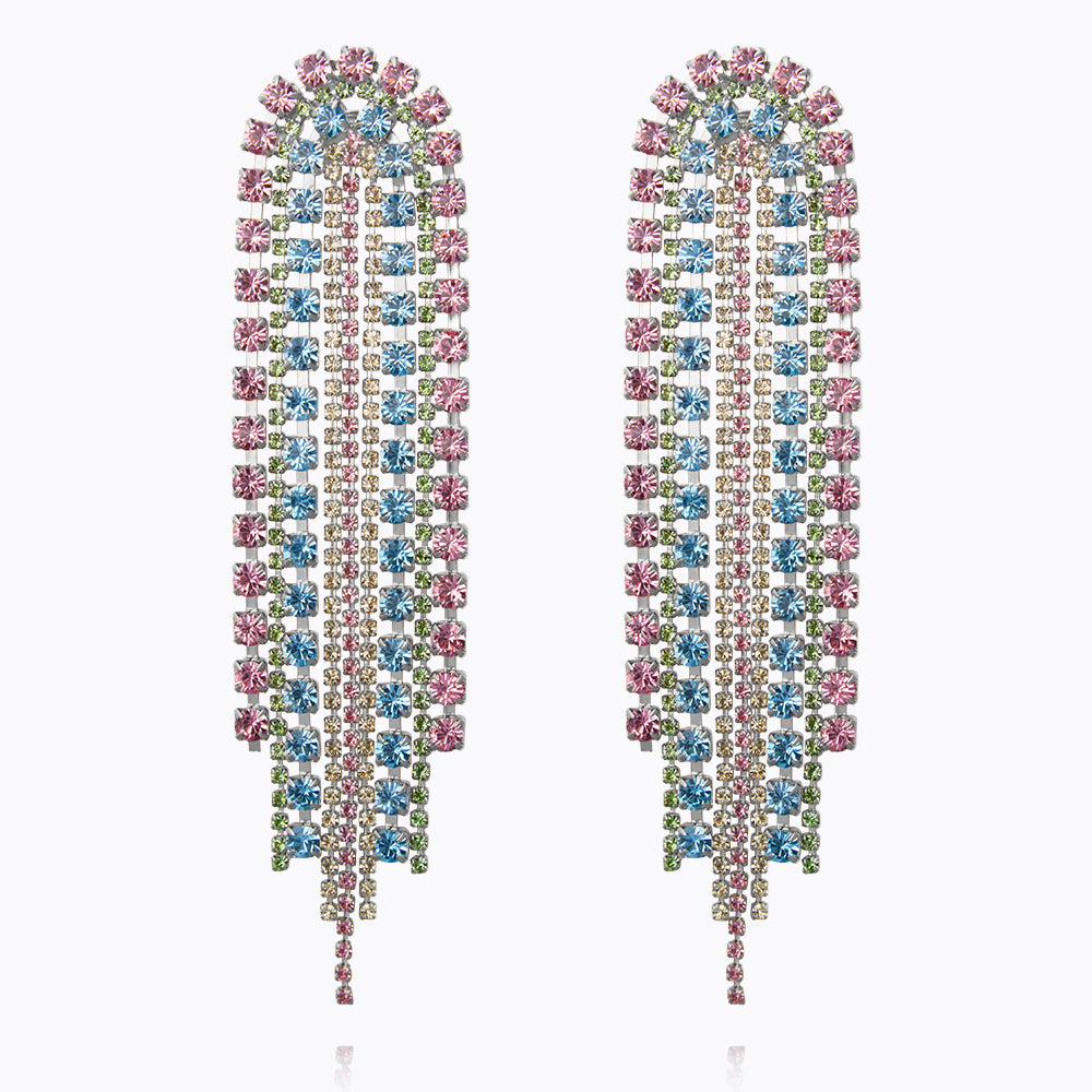Make a grand entrance with the Una Earrings! These statement earrings cascade in vibrant shades of blue, pink, and green crystals, creating a dreamy waterfall effect. Designed to dazzle, the Una Earrings add drama and glamor to any ensemble. Perfect for special occasions or whenever you want to feel unforgettable.