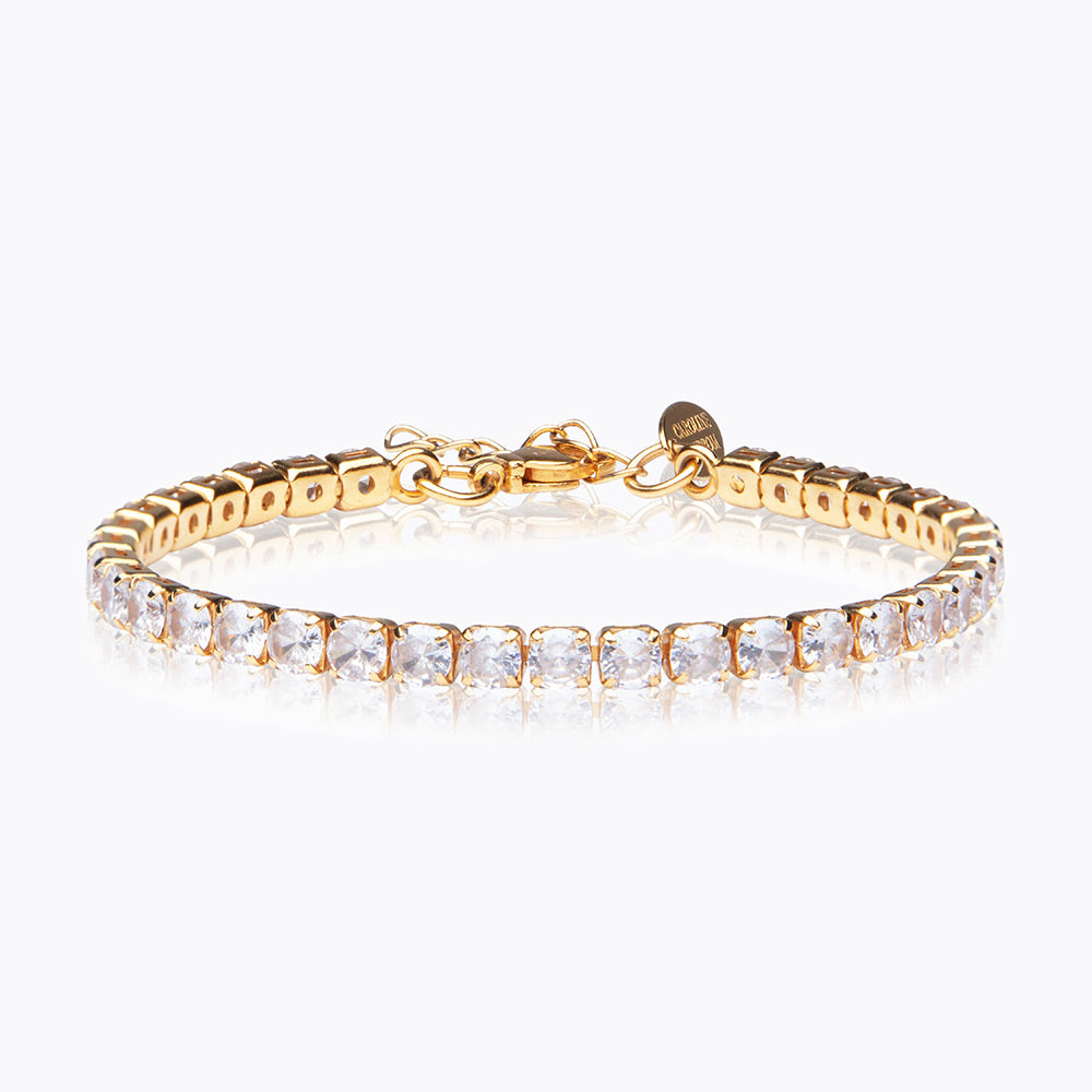 A must-have in your bracelet collection. Zara Bracelet is both timeless and luxurious, which makes it the perfect piece to style with your fall / winter looks. The bracelet is made of Cubic zirconia which is similar to a diamond with its brilliance and crystal clarity. This crystalline material is synthetic, which means that the gemstones are exclusively lab-created.